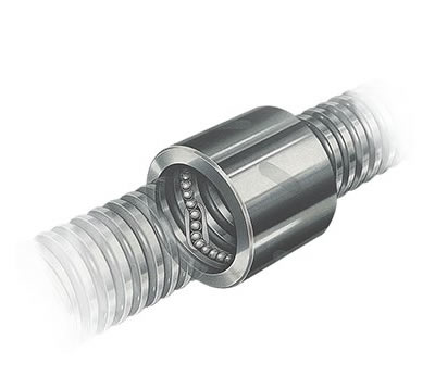 構(gòu)造 端蓋式滾珠絲杠是由絲杠、螺帽、鋼珠及端蓋組合而成。螺帽上加工一軸向貫穿孔作為鋼珠回流,從絲杠的螺旋溝槽進(jìn)入端蓋后通過貫穿孔再回到螺旋溝槽,做無限循環(huán)運(yùn)動(dòng)。此一設(shè)計(jì)使鋼珠得以行經(jīng)螺帽的前后兩端,由于所有螺旋溝槽上都布滿有效滾珠,因此在相同動(dòng)負(fù)荷下,螺帽長(zhǎng)度較傳統(tǒng)設(shè)計(jì)短。